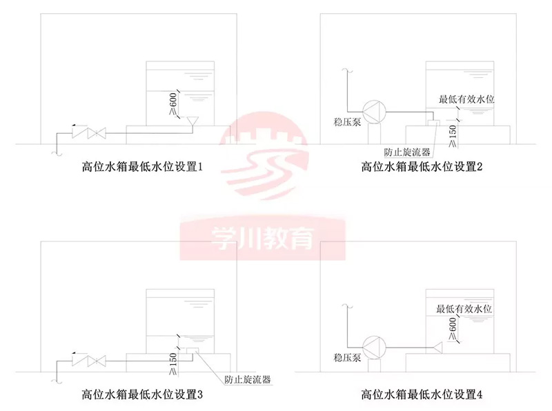 10. 高位消防水箱出水管應(yīng)位于高位消防水箱最低水位以下,并應(yīng)設(shè)置防止消防用水進(jìn)入高位消防水箱的止回閥。